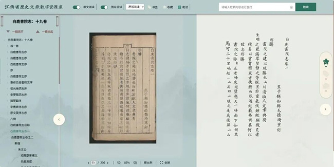 古籍数字化,是盘活地方文化遗产的关键举措。刘景会介绍,江西省图书馆牵头构建了多层次的古籍数字资源体系,目前已完成1572部11082册古籍的数字化加工,生成数字影像794006页。其中,2025年重点推进的“江西省历史文献数字资源库(一期)”正式搭建完成,核心收录入选《国家珍贵古籍名录》及《江西省珍贵古籍名录》的古籍数字化资源,涵盖经史子集各个部类,同时专门聚合“江西诗派”“江西书院”等特色专题资源,让特色文献实现精准传播。江西省图书馆还深度参与《江右文库》编纂出版工程,提供专门场地与设备全力支持文库编纂,累计向编辑部提供360部3451册27.3万余页高精度古籍影像,约占已出版文库的三分之一,2025年4月,该工程首批数字化成果已接入该馆数字平台开放访问,读者无需注册即可便捷阅览,真正实现了古籍资源的普惠传播。此外,在全国智慧图书馆体系建设项目支持下,江西省图书馆完成了全部117部《国家珍贵古籍名录》古籍及58部省级珍贵古籍的数字化,均实现OCR全文识别,让珍贵文献的检索与利用更高效。