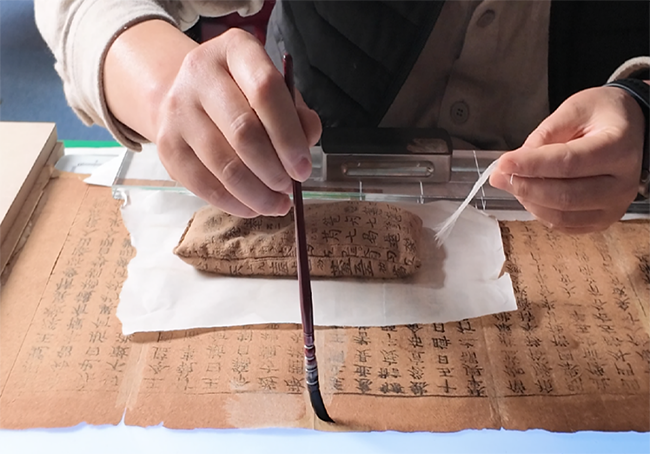 修复团队在严格遵循“不改变文物原状”“最小干预”“可在处理性”等古籍保护原则的基础上,灵活运用干揭、湿度递进、局部对比修补等精细技法,完成了书叶分离、除霉、清洗脱酸及“一卷一策”的针对性修补,显著提升了文献纸张的化学稳定性和物理强度,全面恢复了其经折装形制与阅读功能。