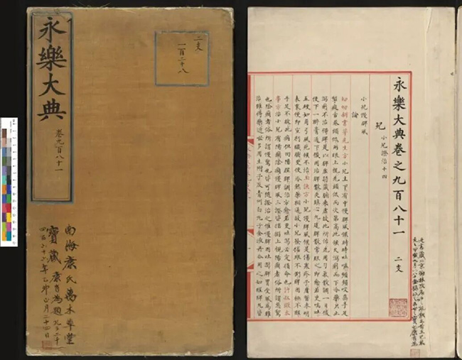 2020年6月,国图社出版《日本京都大学藏〈永乐大典〉》(全三册),其中卷665—666带有木盒,上有日本学者内藤虎次郎为本册《永乐大典》撰写的跋文: