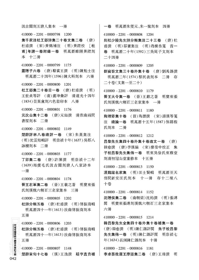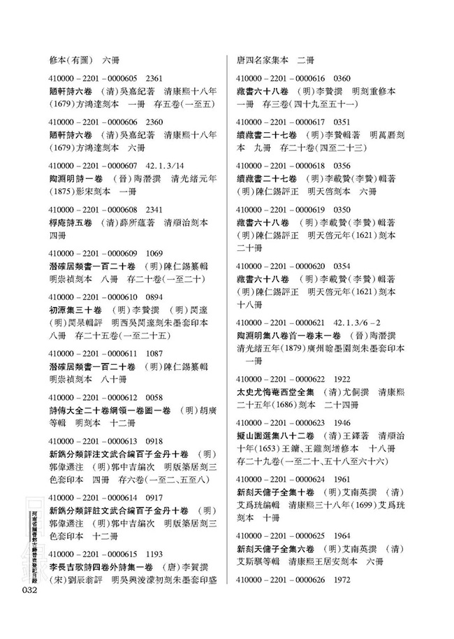 410000-2201-0000001至0010621(古籍普查登记编号)1