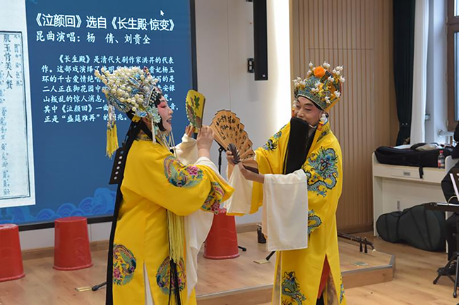 本次活动以黑龙江省图书馆珍贵馆藏——清代乾隆年间刻本《纳书楹曲谱》为蓝本,精选其中戏曲音乐遗产进行现场演绎,旨在让书写在古籍里的文字与乐符真正“活起来”,为中外大学生呈现了一场底蕴深厚的文化盛宴。