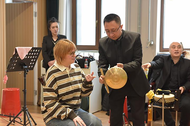 本次活动迎来了一批特殊而热情的观众——来自俄罗斯、也门、老挝、韩国、巴基斯坦、土库曼斯坦、沙特阿拉伯、孟加拉等国家的留学生。在特别设置的互动环节中,他们在演奏家指导下近距离体验竹笛、二胡、锣鼓等传统乐器,并在著名戏曲演员带领下识读古老的工尺谱,学唱《牡丹亭》经典唱段。现场气氛热烈,掌声与笑声交织,留学生们在亲身体验中感受到了中国传统文化跨越语言障碍的感染力与生命力。