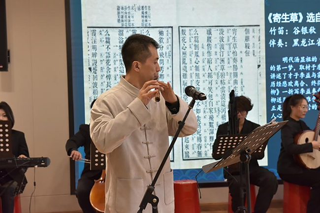 活动在欢快热烈的曲牌联奏中拉开帷幕,竹笛独奏《临镜序》、昆曲演唱《泣颜回》以及由省级非遗传承人李树果和谷银秋呈现的琴箫合奏《朝元歌》等节目轮番登场。演奏家们通过细腻的演绎,生动再现了《西厢记》《长生殿》《牡丹亭》等经典剧目的动人情境,让观众在悠扬古乐中穿越时空,感悟中华戏曲的独特神韵与深厚情感。