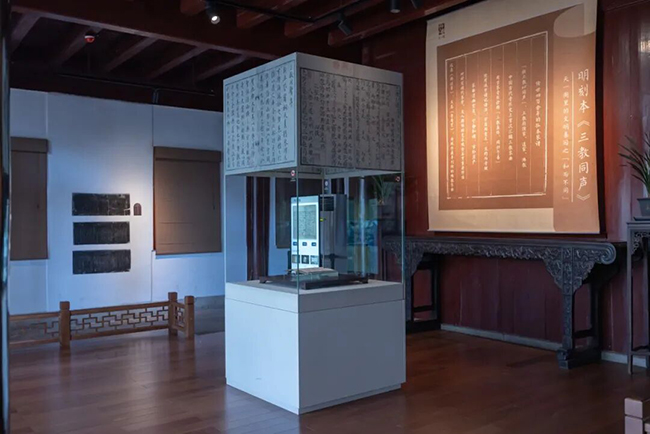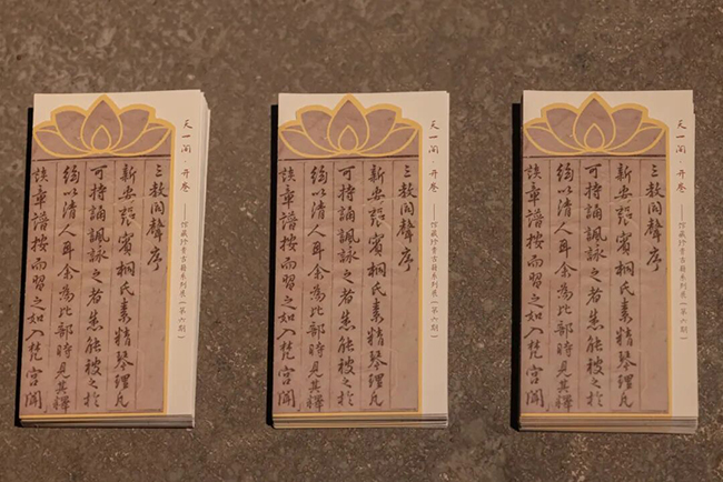 在展厅现场,观众不仅可以翻阅《三教同声》的电子书、观看配套解读短视频,还能聆听从四百多年前穿越而来的古音。天一阁博物院特别邀请了宁波市非遗古琴艺术传承人王益对书中《释谈章》一曲进行打谱和演奏,让明代的泠泠琴音再现人间。