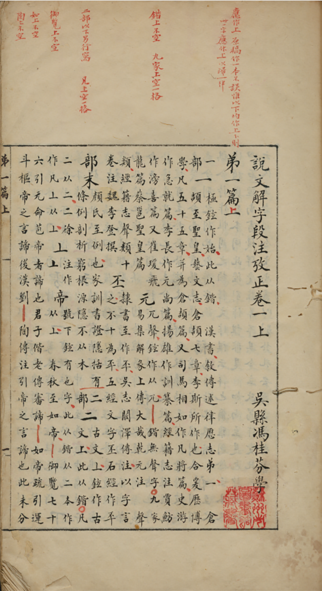 【題著説明】卷端題“説文解字段注攷正卷一上”,“吴縣馮桂芬學”。