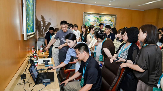 2025古籍数字化与活化利用经验交流活动上,裸眼3D增强阅读项目吸引图书馆人争相体验。陕西省图书馆供图