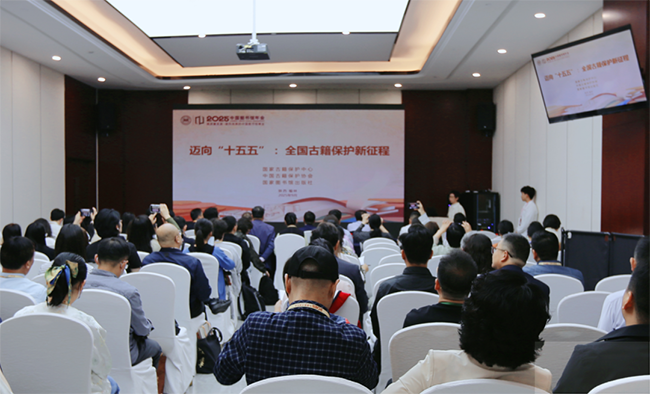 2025年中国图书馆年会第六分会场以“迈向‘十五五’:全国古籍保护新征程”为主题,会上,国家图书馆原常务副馆长、国家古籍保护中心原副主任、中国古籍保护协会常务副会长张志清作专家发言,强调促进事业和产业的同步发展是古籍保护高质量发展的必由之路,并以“为深入开展‘中华古籍保护计划’打造坚实社会基础”为主题分享了自己的思考。