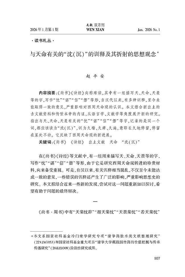 赵平安:与天命有关的“沈(沉)”的训释及其折射的思想观念