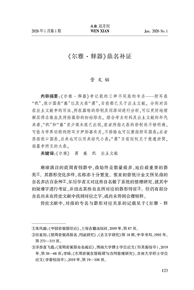管文韬:《尔雅·释器》鼎名补证
