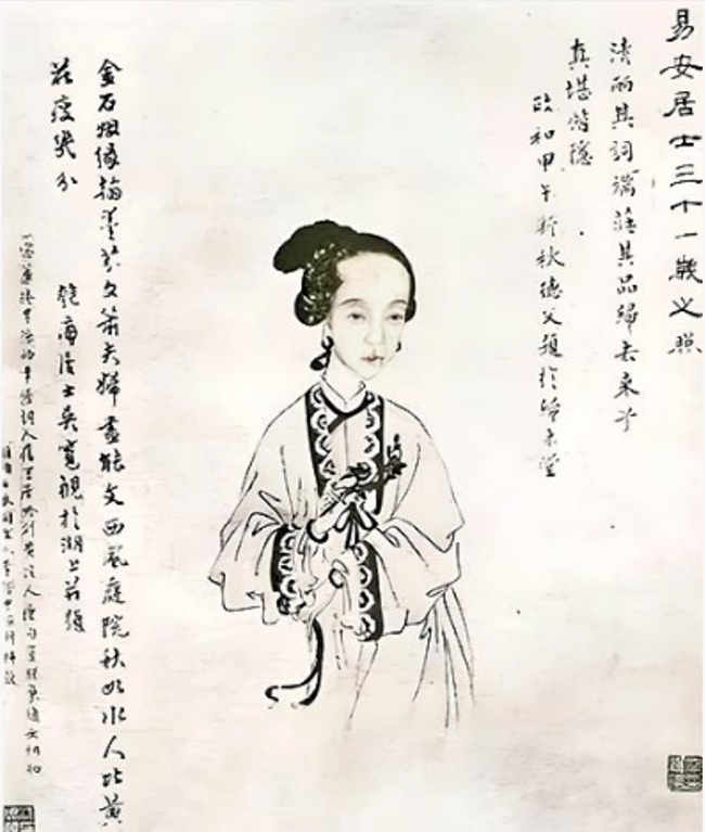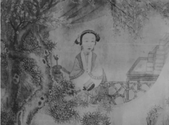 西林太清听雪小照,潘絜兹摹本,出自《顾太清奕绘诗词合集》扉页