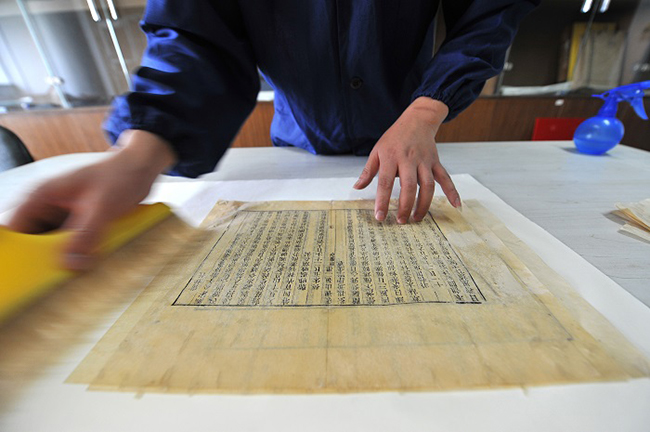 为加强古籍修复力量,我馆于2009年引进了一名南京金陵科技学院古籍修复专业的毕业生。近几年来,还选派其参加了国家及省古籍保护中心举办的多次古籍修复培训班,不断提高古籍修复技能。在硬件设施方面,我馆通过申请古籍保护专项经费,建立了专门的古籍修复室及书页冲洗室,古籍修复工作条件有了根本性改善。