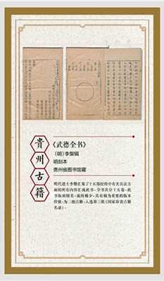 古籍文献乃人类文明之瑰宝,是文化得以传承之凭介。百余来,贵州贤哲以搜罗乡邦文献为使命,故纸寻幽,千里载籍,奠定贵州公藏古籍之基础。而尤以贵州省图书馆、贵州师范大学图书馆、贵州民族大学图书馆、贵州省博物馆、荔波县档案馆等机构堪称宏富。计汉文古籍两万余部,少数民族古籍一万四千余部,而其中皆不乏精善之本。目前,贵州省共有171部古籍入选《国家珍贵古籍名录》,其中汉文古籍33部,少数民族古籍138部。