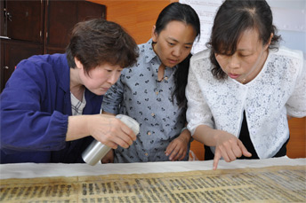 古籍修复 - 有计划、有步骤地对全省珍贵古籍进行修复是山西省古籍保护中心的重点工作之一。2009年,山西省图书馆被评为国家级古籍修复中心。2016年,“国家级古籍修复技艺传习中心山西传习所”在山西省图书馆挂牌成立,并聘请国家图书馆古籍修复专家胡玉清为传习所导师,随即启动了“山西省国家珍贵古籍修复项目”,第一阶段对省内所藏21件入选《国家珍贵古籍名录》的善本佛经进行修复。历经一年多的努力,圆满完成了修复任务。