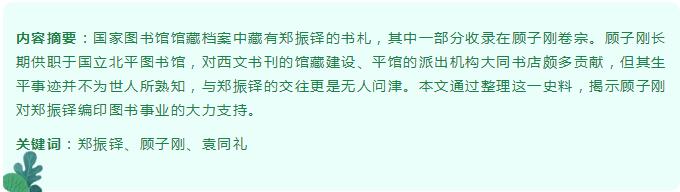 十分可惜,郑振铎与顾子刚的通信只保留了1947、1948年的极小一部分。太平洋战争爆发后,顾子刚先生因曾协助美国国会图书馆、各大学图书馆大量购书被日军抓捕、审问,此种经历下私人信函恐均早已自行销毁。但即便如此,通过这仅存的十数通信札,今人可以窥见两位前辈的行谊。这批珍贵史料得以保存至今,极有可能是1949年后顾子刚将其捐赠给北京图书馆,最终被编入馆藏档案之中。本文为国家图书馆馆级科研项目“国立北平图书馆与中国现代学术机构关系研究”(编号:NLC-KY-2014-17))阶段性成果之一。