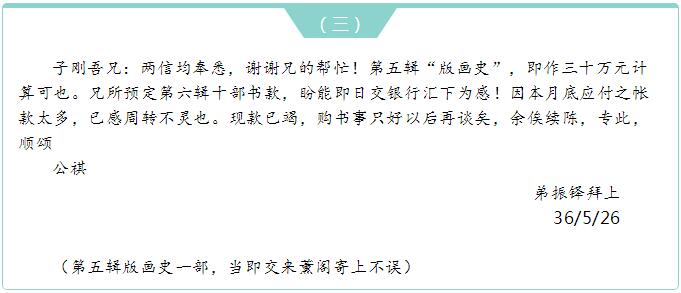 按:信左上角印有1947年5月29日字样,应为收信日期。《中国版画史图录·第六辑》虽然曾付印半数,但并未最终成书。该信后附“中国银行”电汇便条一张,记为1947年5月30日,汇款人顾子刚(上海愚园路67弄44号),收款人郑振铎,金额国币壹佰壹拾万元。