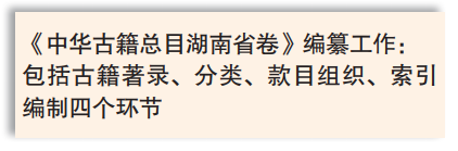 在完成全省大部分单位或主要单位所藏古籍普查之后,湖南省古籍保护中心即开始着手编纂《中华古籍总目·湖南省卷》,并在此基础上建立湖南省古籍书目数据库。