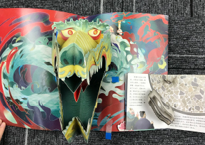 纸艺设计师犹如一名出色的魔术师,平面的白纸向上提拉,龙头、河水、仙鹤忽然变成了立体图形,在翻动书页的同时活动起来。