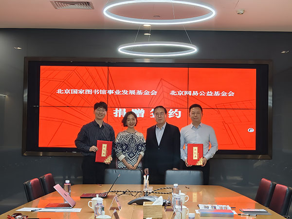 12月25日,国家图书馆基金会与网易公益基金会在网易北京研发中心举办捐赠签约仪式暨党建交流活动。国家图书馆基金会理事长孙一钢、网易公益基金会理事长严晋出席活动。在双方代表共同见证下,网易公益基金会正式向国家图书馆基金会捐赠AI智能产品及专项资金,孙一钢向严晋颁发捐赠证书。