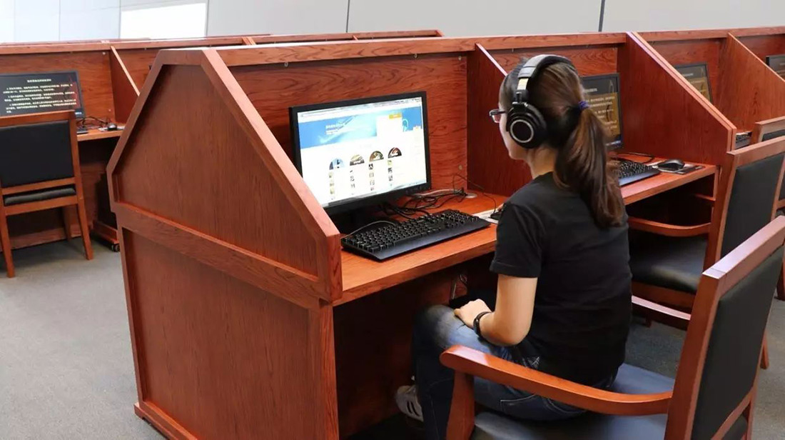 视听服务空间位于总馆北区四层北侧,总面积近1300平米,内设黑胶唱片欣赏区、CD欣赏区、DVD欣赏区、在线资源欣赏区、纸本文献阅览区、主题休闲区和文献展示区,为读者提供万余册中外文视听艺术类图书、期刊的阅览;30余万张各类型实体视听盘片的阅览;以及数字化的100余万首音频资源、15万余小时的视频资源和在线数据库视听资源的欣赏服务。视听服务空间同时还是重点文化工程展示服务的窗口,将近年来国家图书馆牵头承办或参与实施的诸如数字图书馆推广工程、中华古籍保护计划、民国时期文献保护计划、国图公开课、中国记忆、非物质文化遗产记录等国家重点文化工程建设中形成的视听资源进行汇聚和整合,向社会各界进行展示、宣传和服务。