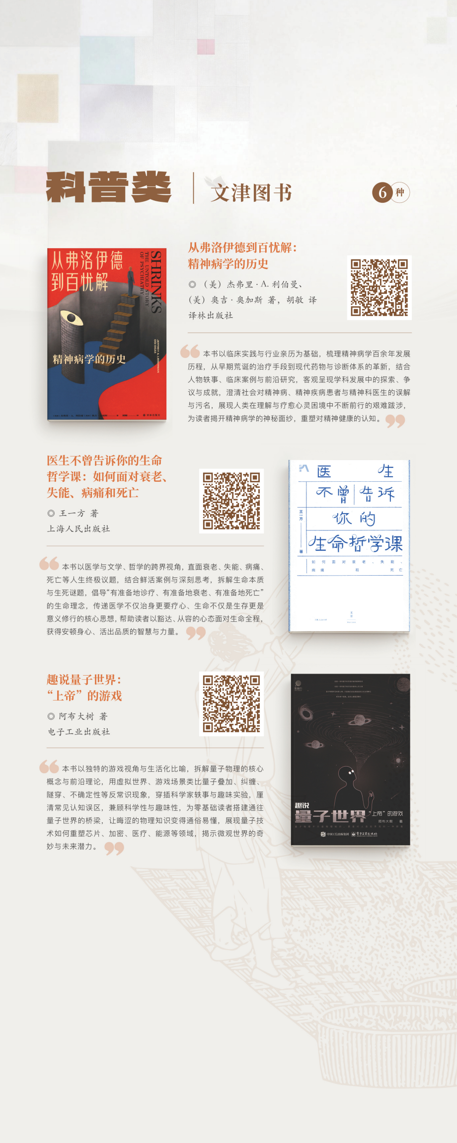 全民阅读工作旨在推进书香社会建设,增强全民族思想道德素质和科学文化素养,提高全社会文明程度。国家图书馆以文津图书为桥梁,连接作者、出版者与读者,以优质图书滋养民族心灵、培育文化自信。二十多年来,文津图书始终坚持公益性、公平性、公开性原则,聚焦社科、科普、少儿三大核心品类,遴选传播知识、陶冶情操、提升公众人文与科学素养的普及性图书,与条例中“鼓励推出思想精深、艺术精湛、制作精良的优秀出版物,加大全民阅读优质内容供给”的要求高度统一,成为全民阅读的优质范本。